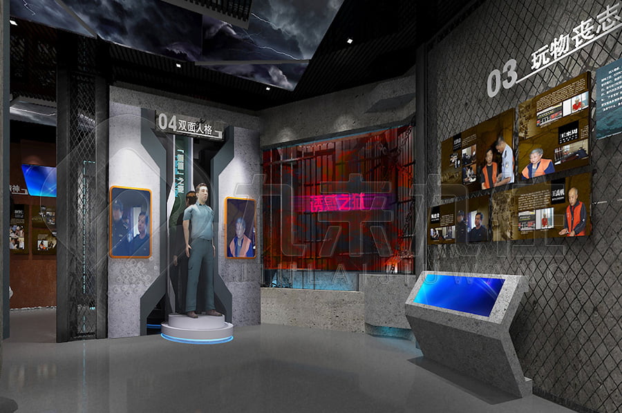 第四部分是“社會和諧”,反映了公安工作與社會和諧的密切關(guān)系。該部分展示了一些影響社會穩(wěn)定或人民生活的社會問題或難題,通過圖片或視頻。該部分還展示了公安機關(guān)通過各種手段如調(diào)解、協(xié)商、合作、創(chuàng)新等解決或處理這些問題或難題的成功案例或故事。該部分還使用了一些互動設(shè)備或平臺如在線調(diào)查、留言板、社交媒體等,收集參觀者對于如何改進公安工作或社會和諧的反饋或建議。該部分的設(shè)計意圖是突出公安機關(guān)在維護社會和諧中的作用和貢獻,培養(yǎng)公安干警和市民的參與感、責(zé)任感和合作意識。